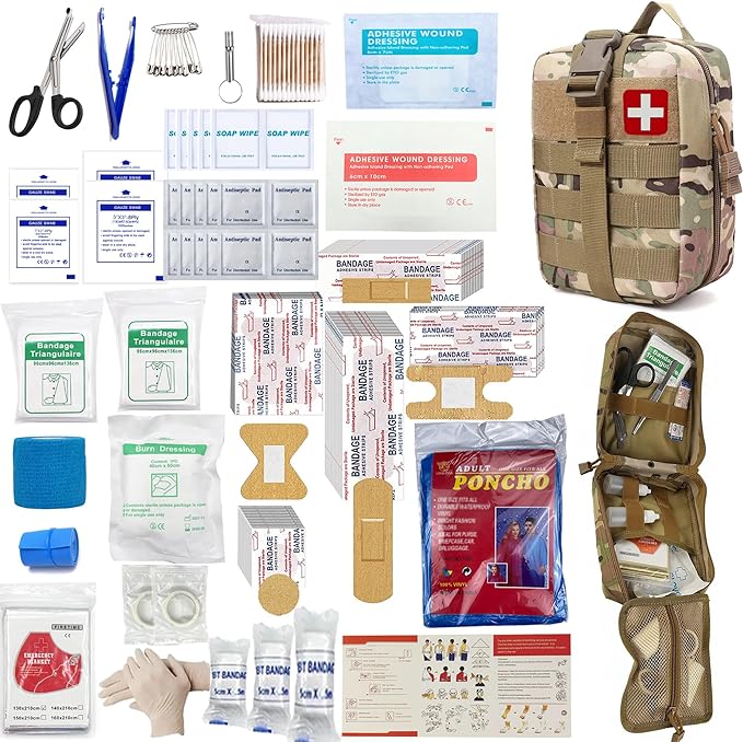 オールインワンのタクティカル サバイバル バックパック応急処置キットは、アウトドア冒険家、緊急時の備え、災害対応のために設計されています。耐久性のあるミリタリー スタイルのバックパックに詰め込まれており、必須のサバイバル ツール、応急処置用品、緊急装備が 1 つの完全なソリューションに組み込まれています。