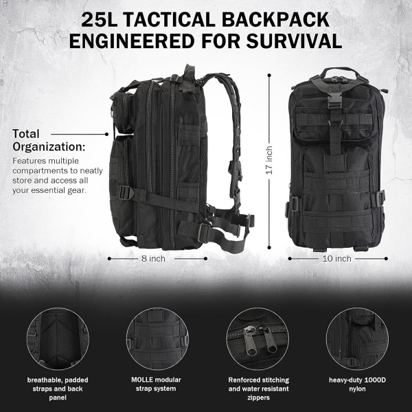 コンパクトで軽量な構造で、MOLLE互換性があり、タクティカルギアを取り付けることができます。