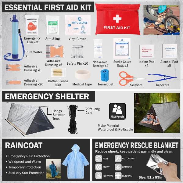 キャンプ、ハイキング、ブッシュクラフト、サバイバルトレーニング、緊急事態のいずれの準備をしている場合でも、このキットは最も重要なときに確実に準備を整えるのに役立ちます。