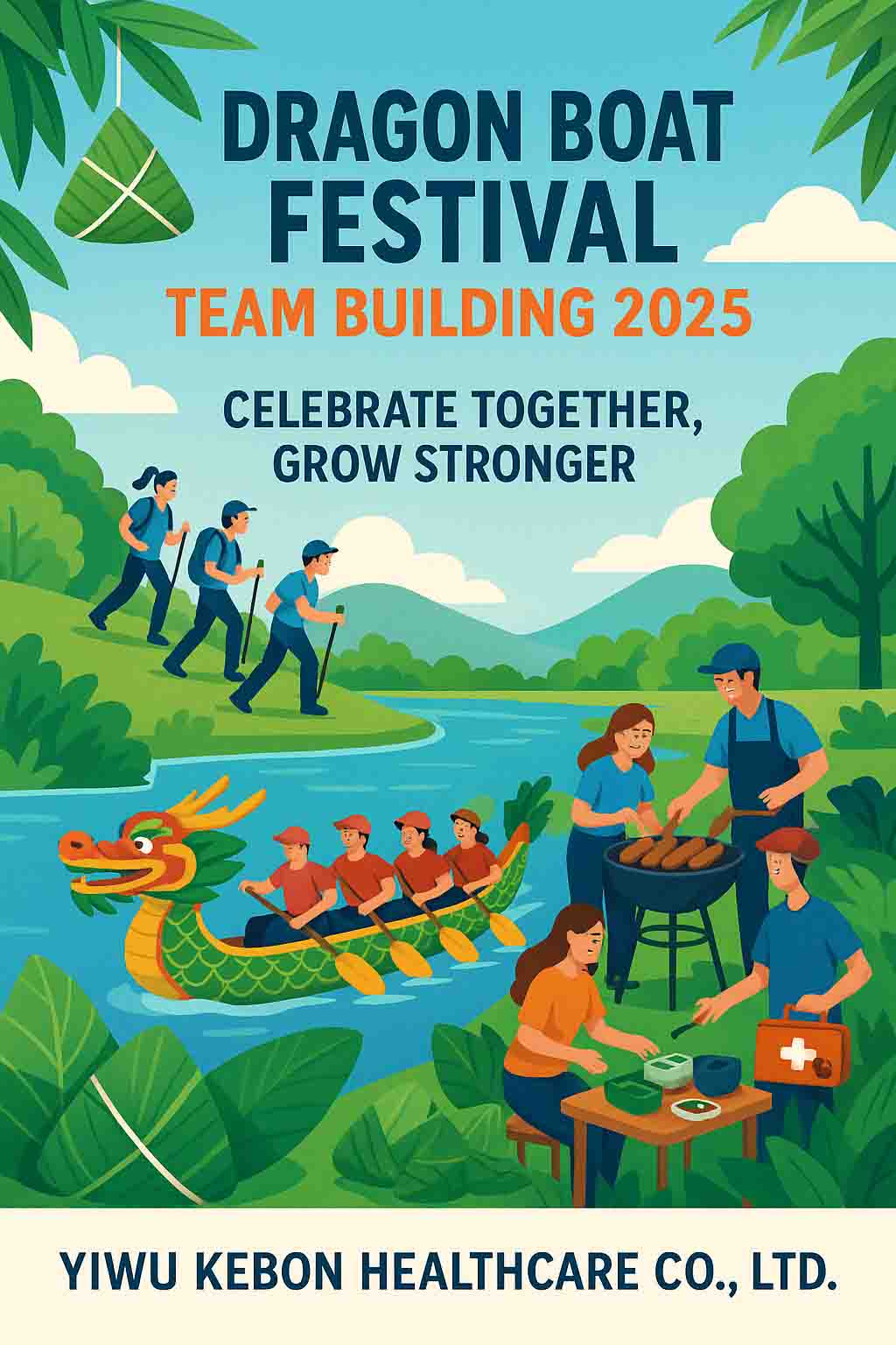 今後の伝統的な中国フェスティバルであるドラゴンボートフェスティバル - Yiwu Kebon Healthcare Co.、Ltd。を祝うために、6月上旬に全社的な屋外チームビルディングアクティビティを開催します。 「Healthy Dragon Boat Festival、Moving Together Together」をテーマにしたこのイベントは、チームの結束力を強化し、すべてのスタッフ間のコラボレーションを強化することを目的としています。