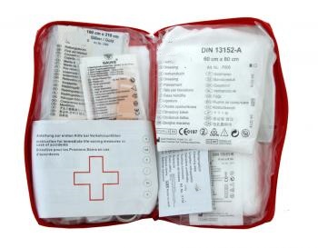 DIN 13164 規格に準拠した応急処置キットは、「道路車両用の応急処置キット」として理解できます。特に次の目的で設計されています。